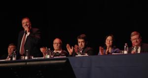 « Nous ne défendons pas un privilège mais luttons contre une injustice », s'insurge Jean-Luc Johaneck devant plus de 4 000 personnes, réunies pour l'occasion dans l'immense salle du parc des expositions de Mulhouse. Deux heures durant, arguments pertinents et phrases chocs se mêlent à un rythme effréné constituant au final un show impressionnant mené par un président déterminé. On y retrouvait globalement toutes les caractéristiques d'un grand spectacle : écrans gigantesques, caméras en grand nombre et surtout un public applaudissant vivement les propos de l'orateur.