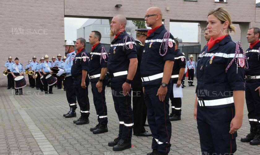 La cérémonie s’est tenue dans la cour du Sdis 68 en présence de nombreuses personnalités parmi lesquelles le préfet du Haut-Rhin Laurent Touvet, le député et président du conseil d’administration du Sdis 68 Eric Straumann, les sénateurs Catherine Troendlé et René Danesi, le maire de Colmar Gilbert Meyer, le directeur départemental et chef du corps départemental des sapeurs-pompiers, le colonel hors classe René Cellier, et le président de l’Union départementale des sapeurs-pompiers, le commandant Martin Klein.